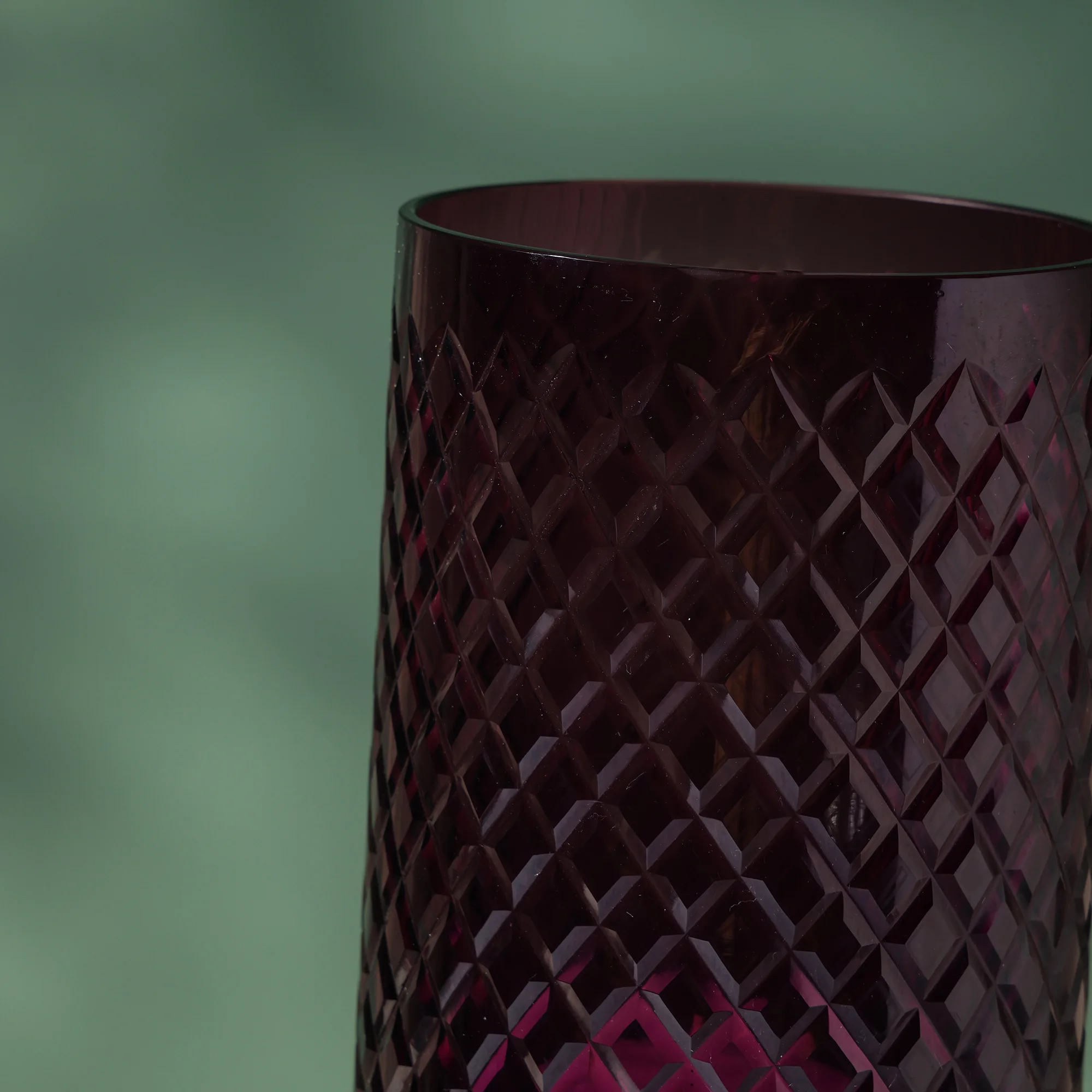 Diamond Cut Engraved Hurricane Glass Vase